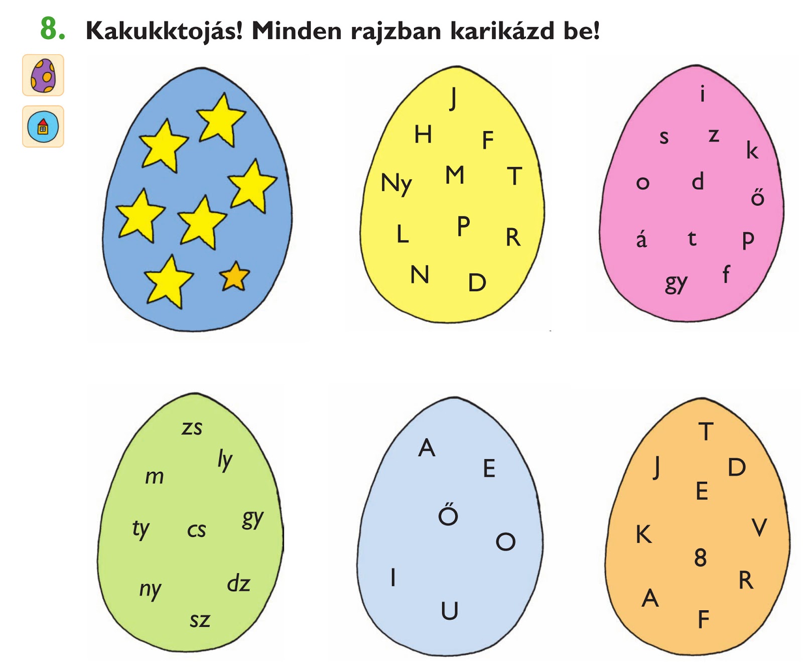 feladatnál mondjátok ki a kép nevét és húzzátok oda ahhoz a betűhöz amelyik